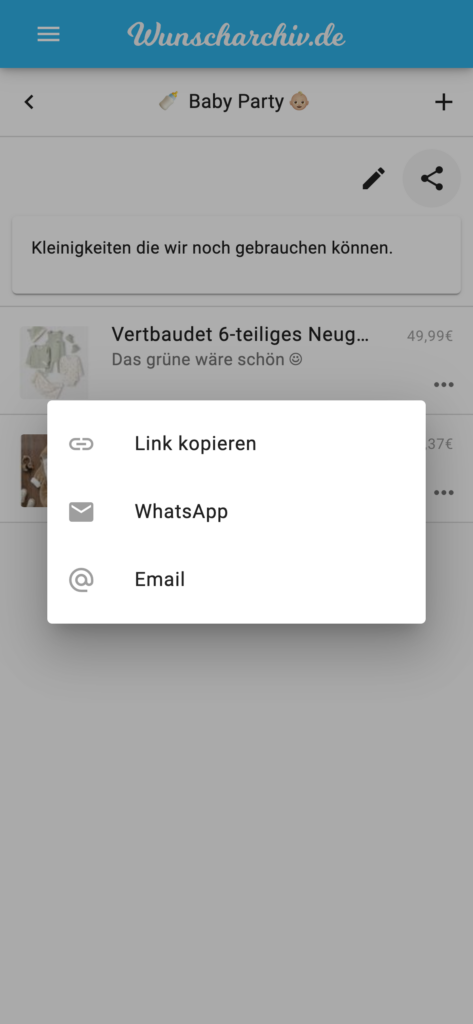 Du kannst deine Wunschlisten mit anderen teilen, so weiß jeder was du brauchst – und alle sind zufrieden.